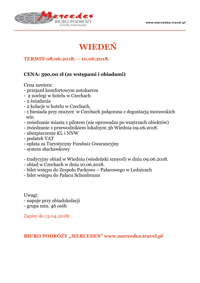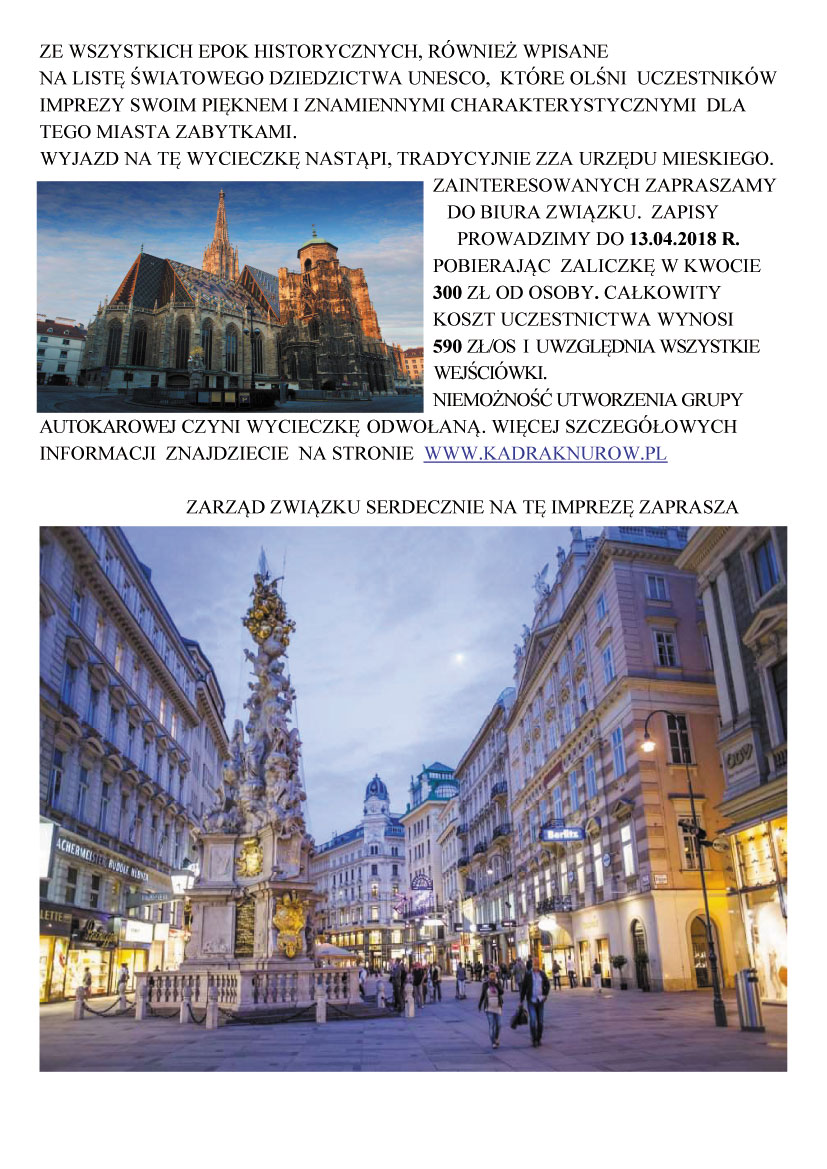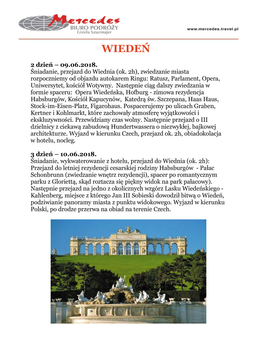 08-10.06.2018 Zapraszamy na wycieczkę do Wiednia