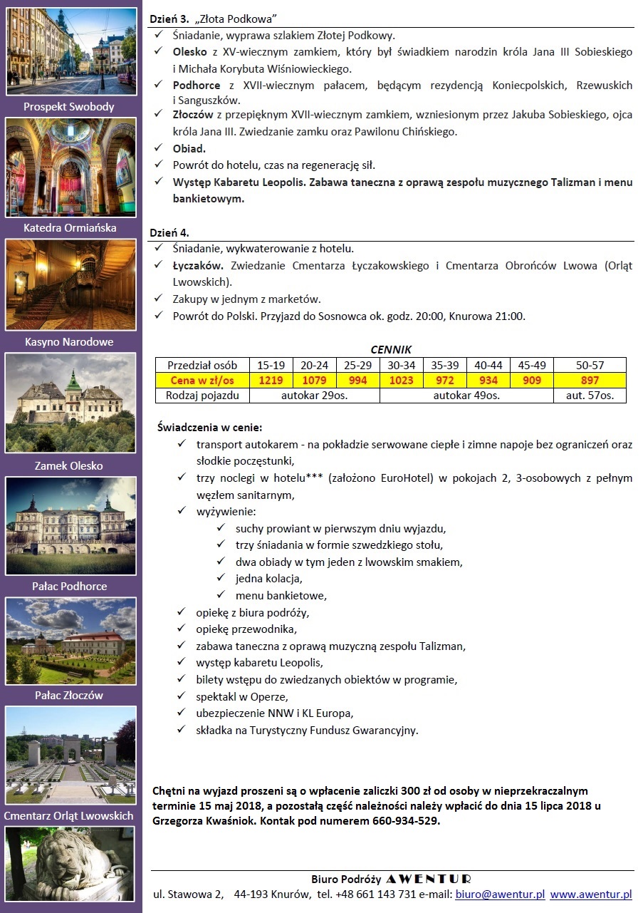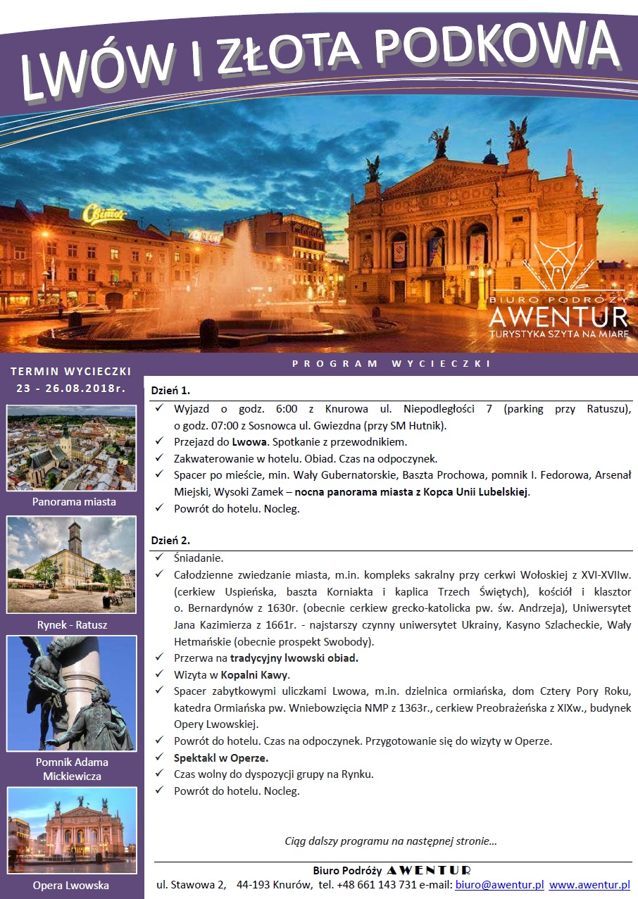 23.08 - 26.08.2018 Zapraszamy na wycieczkę do Lwowa