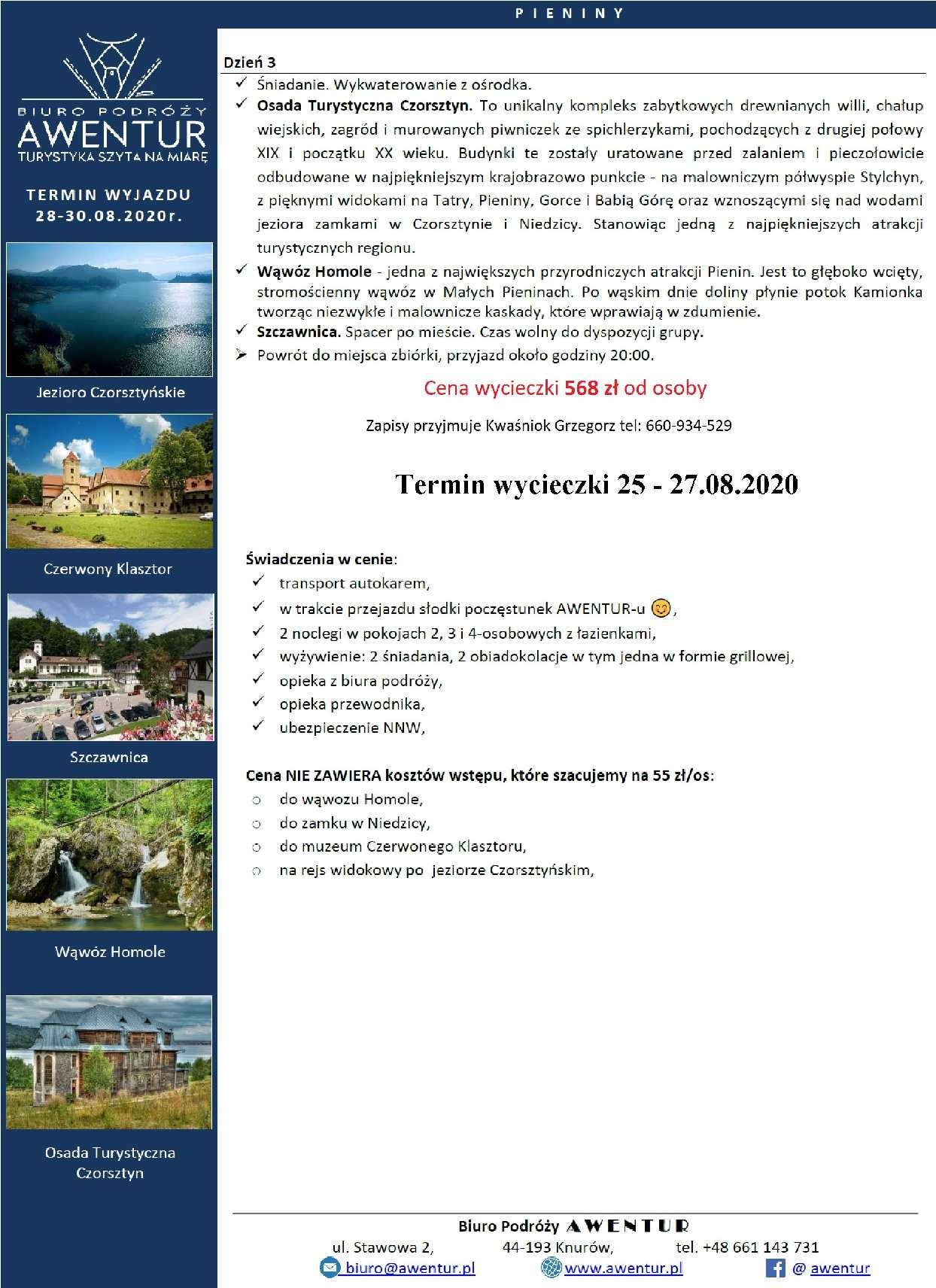 28-30.08.2020 Zapraszamy na wyjazd w Pieniny