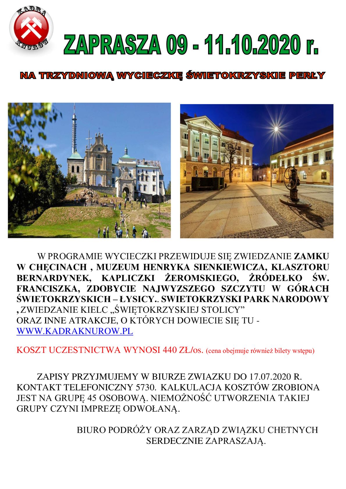 9-11.10.2020 Zapraszamy na trzydniową wycieczkę w świętokrzyskie