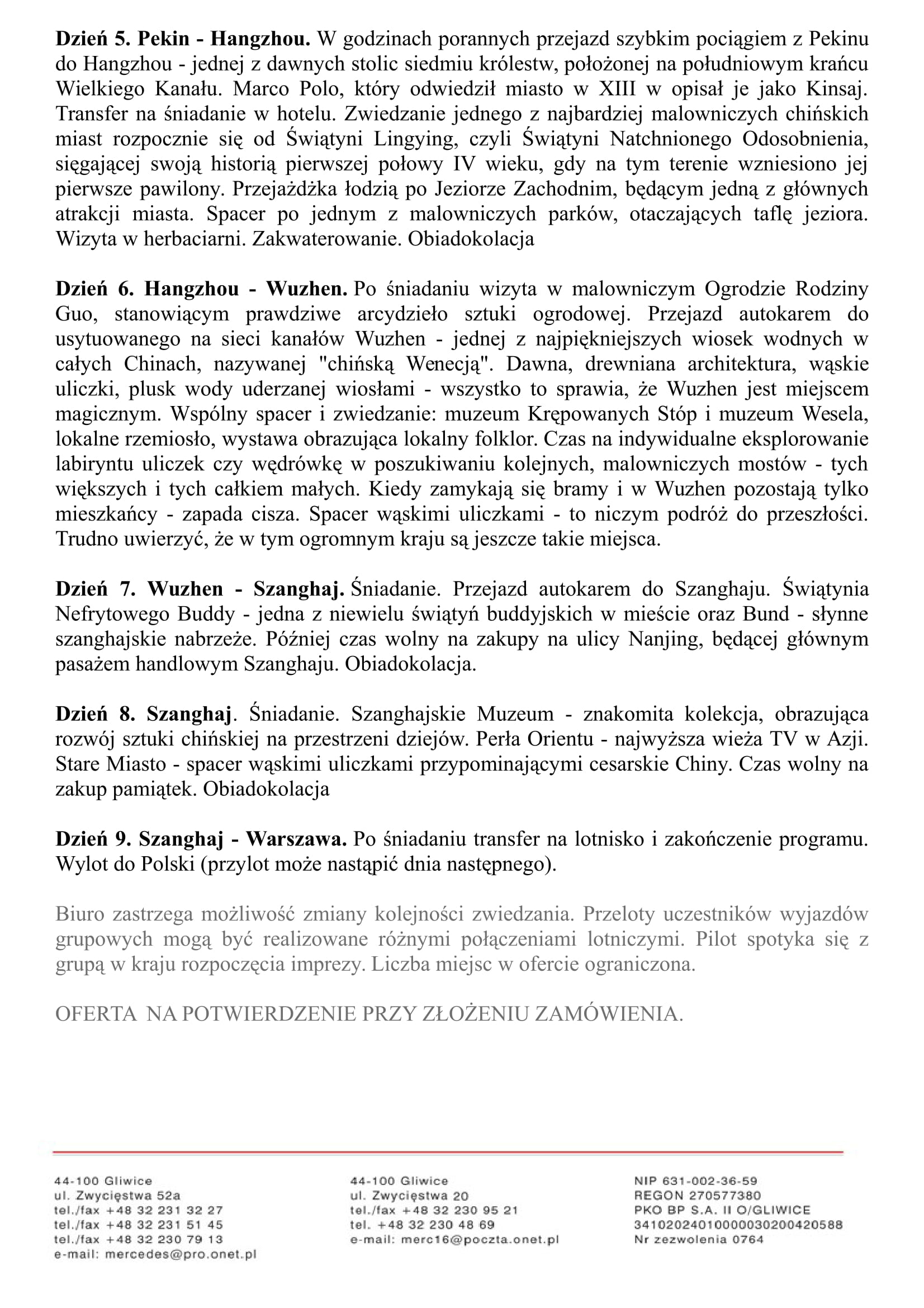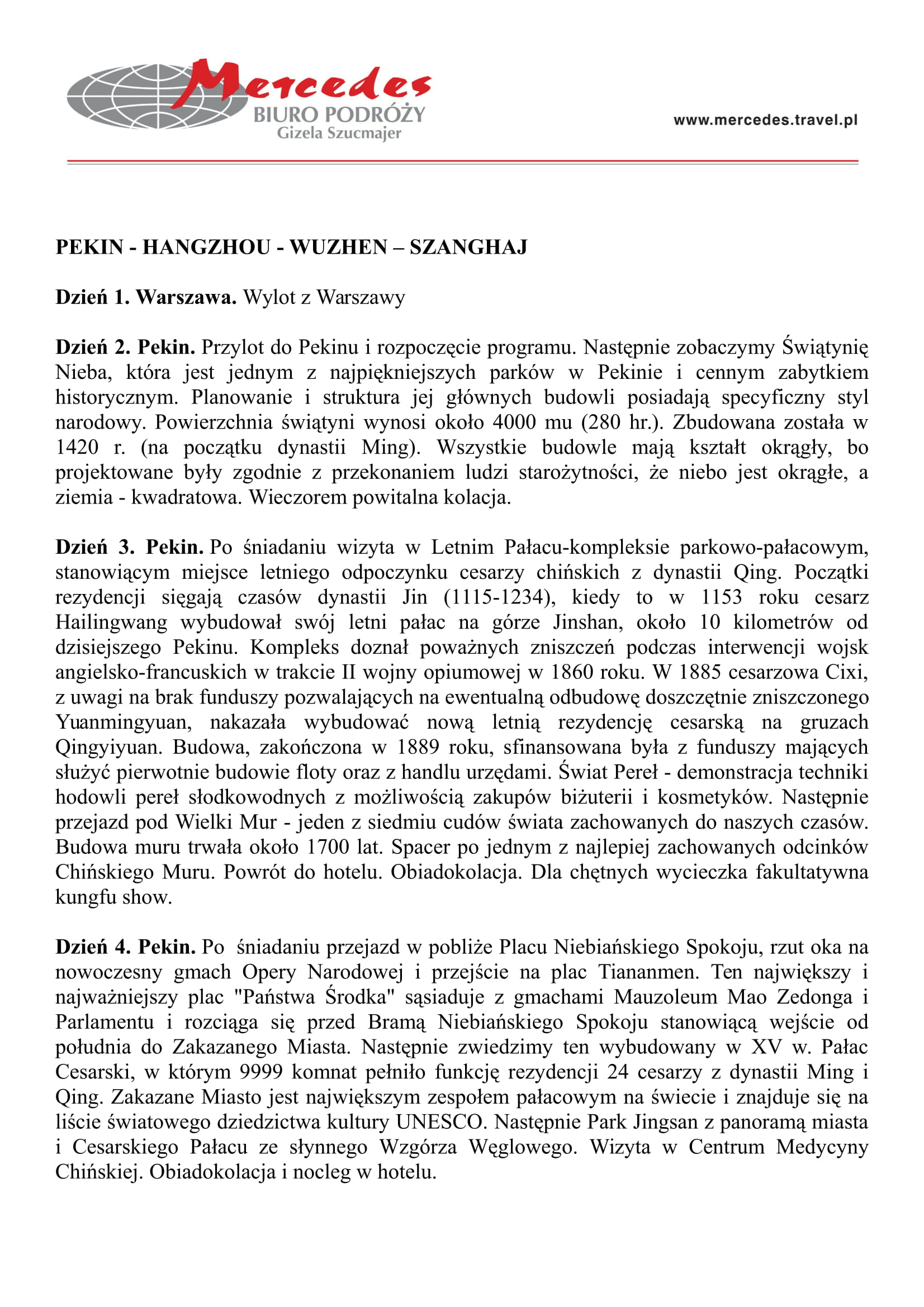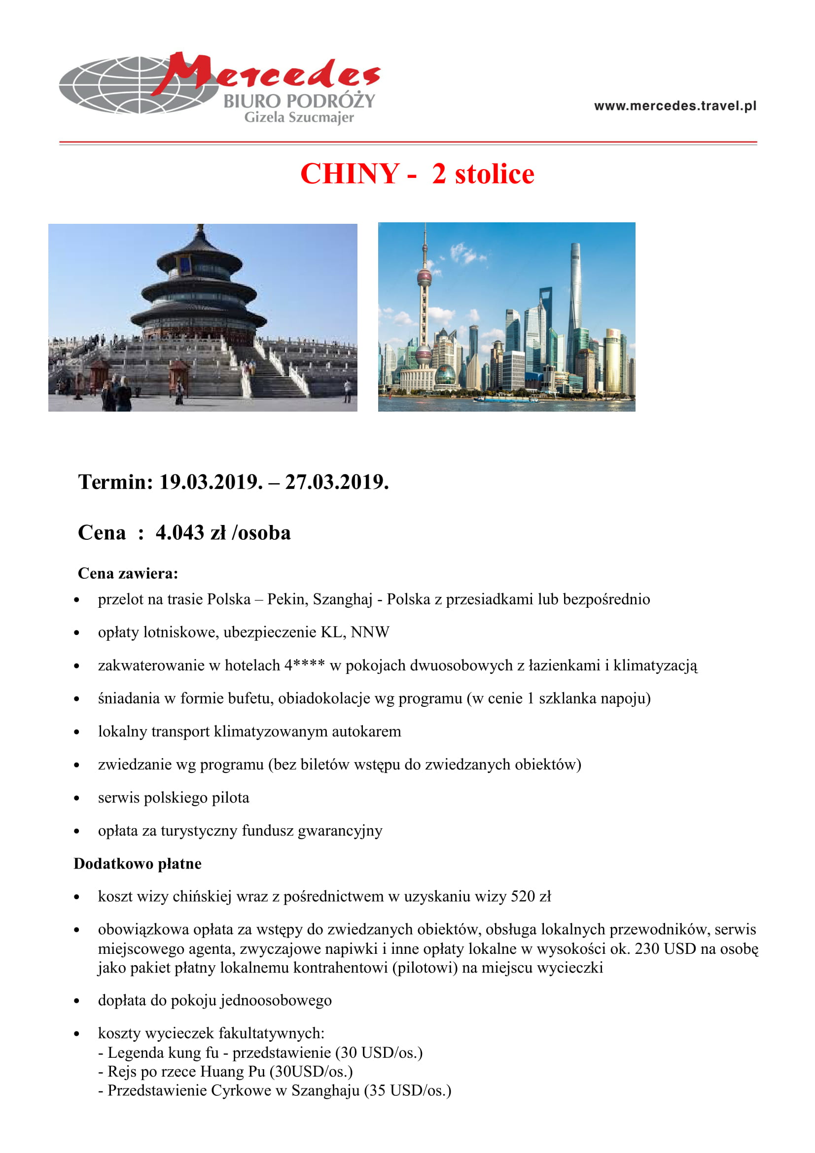 19.03-27.03.2019 Zapraszamy na wycieczkę do Chin