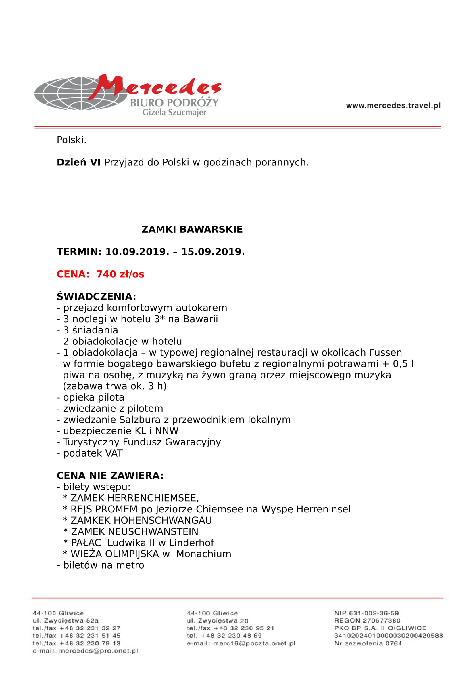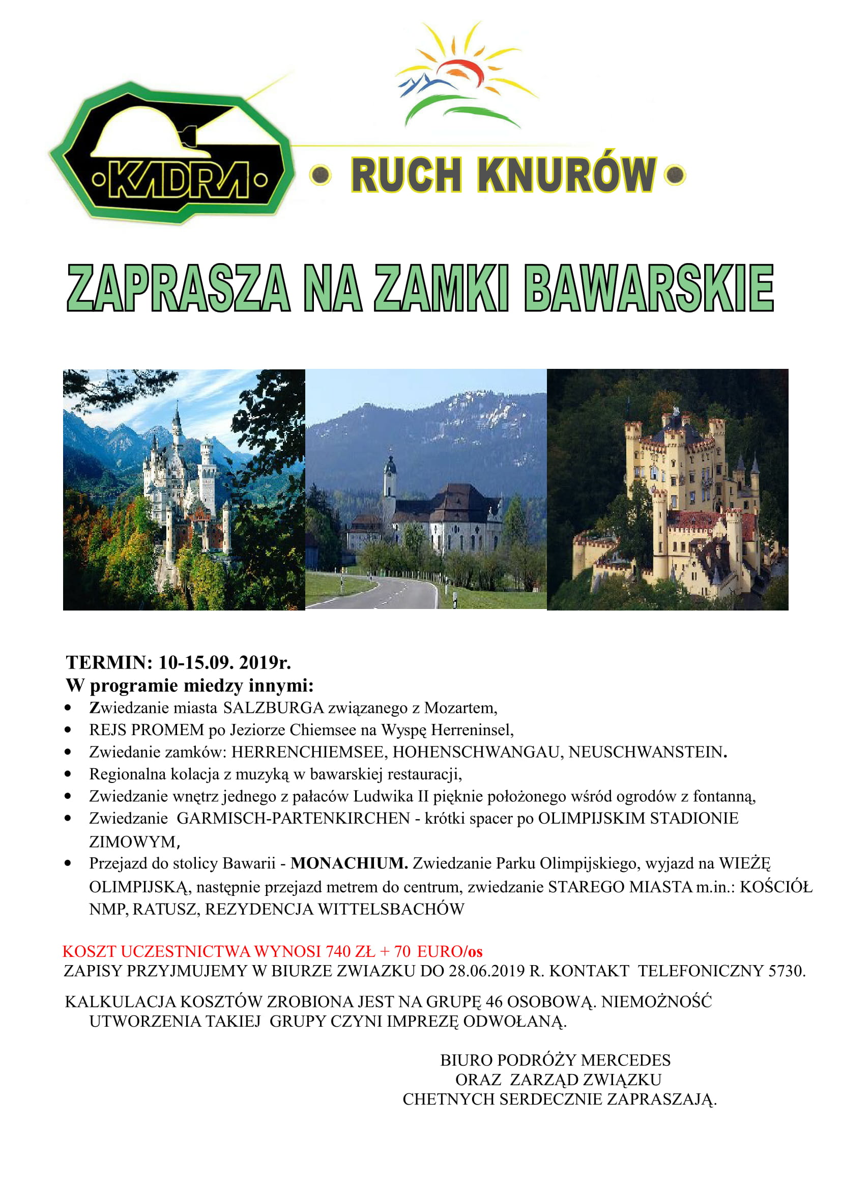 10-15.09.2019 Zapraszamy na zamki Bawarii