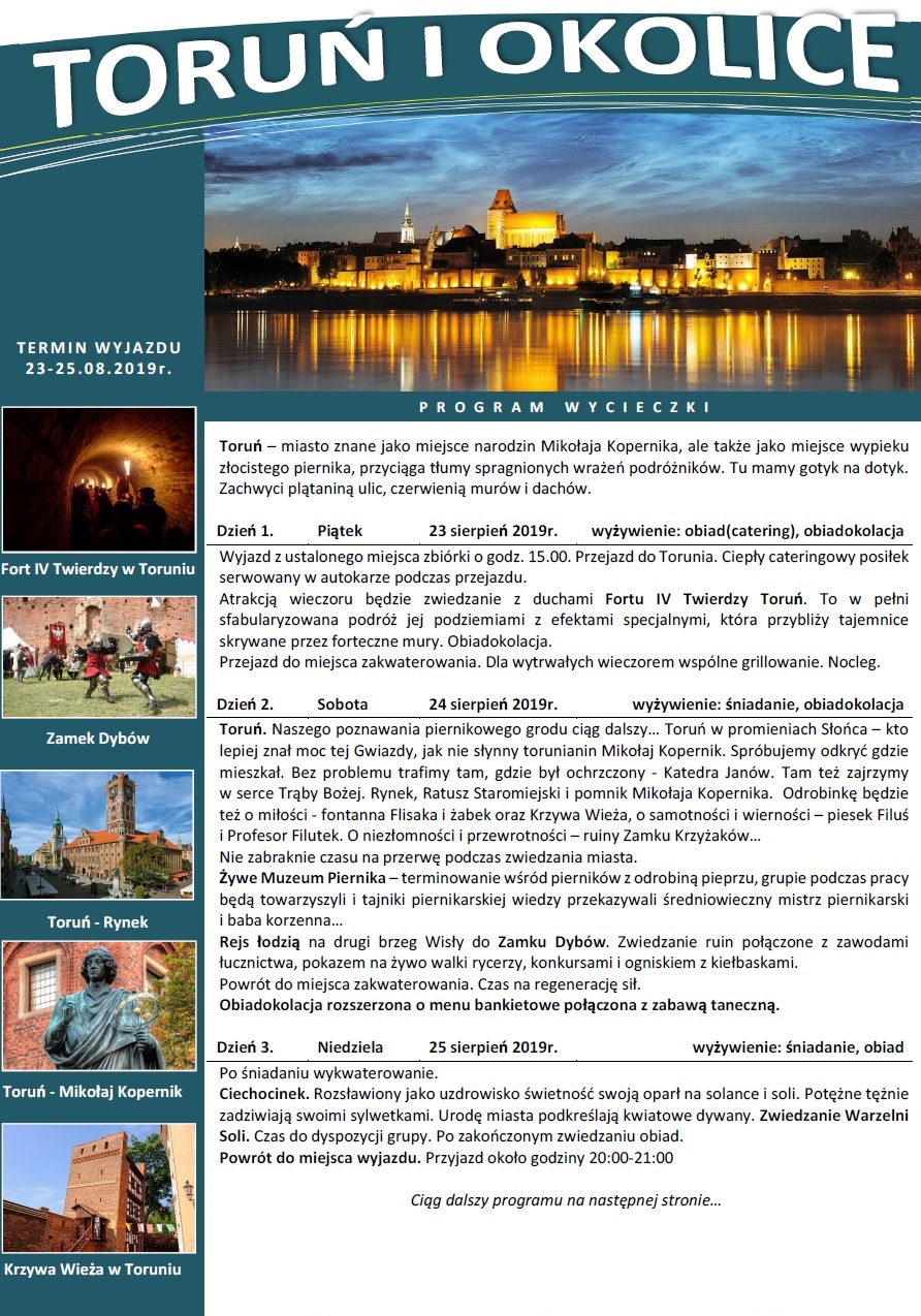 23-25-08.2019 Zapraszamy na wycieczkę do Torunia i okolic