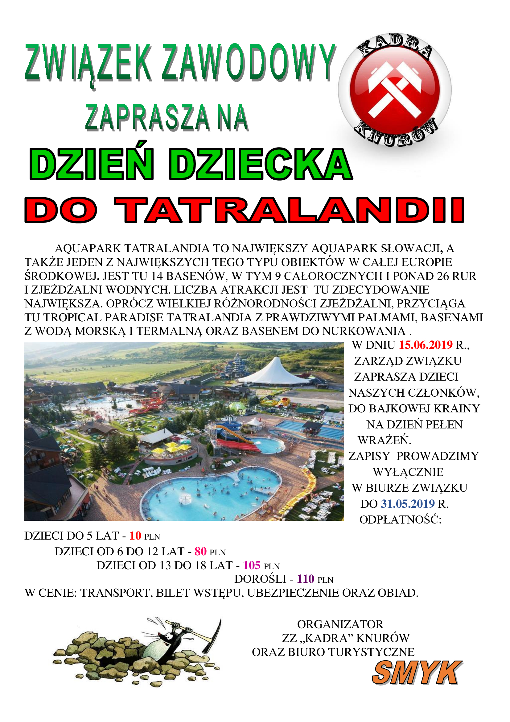 15.06.2019 Zapraszamy dzieci naszych członków do Tatralandi na Słowacji