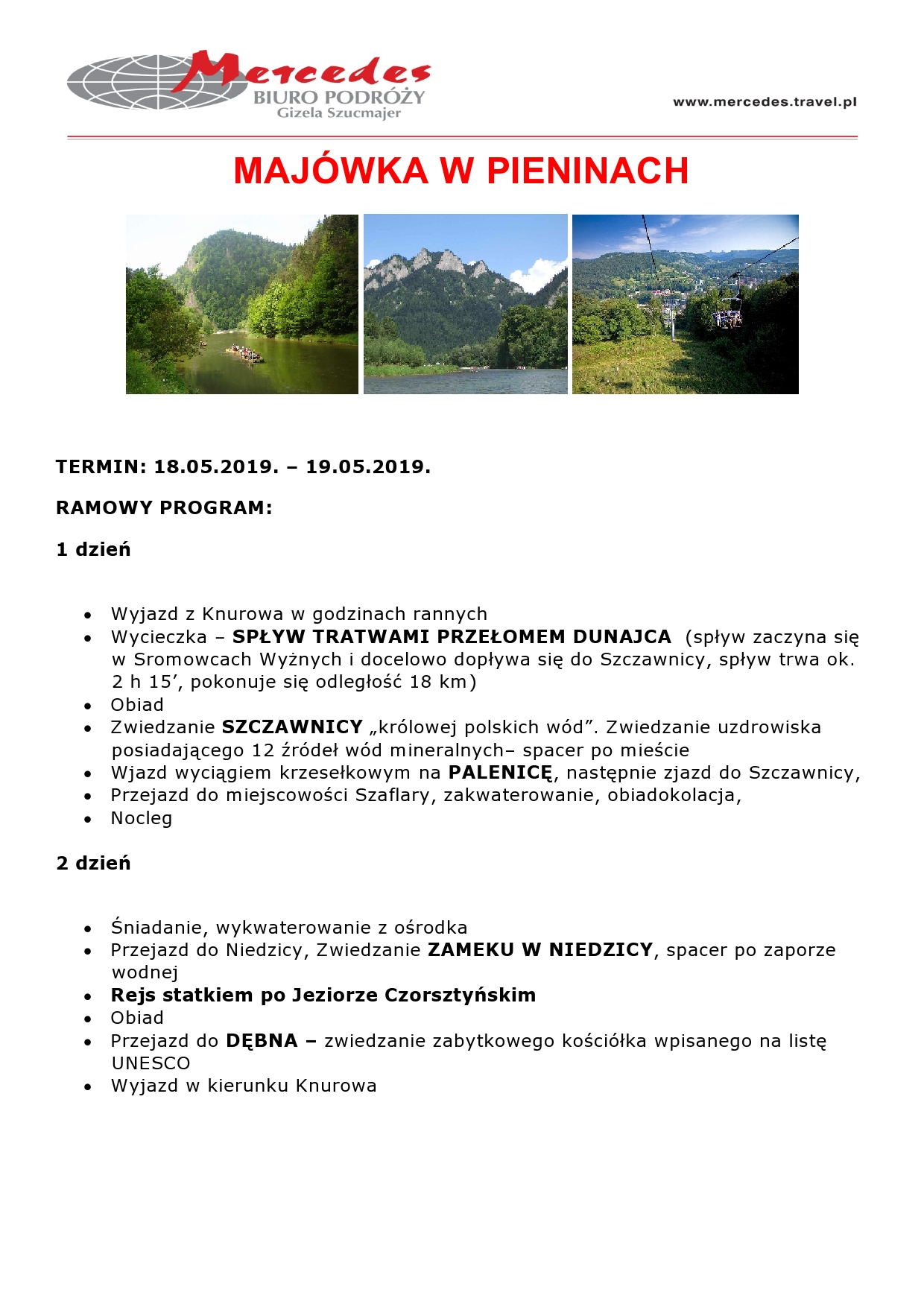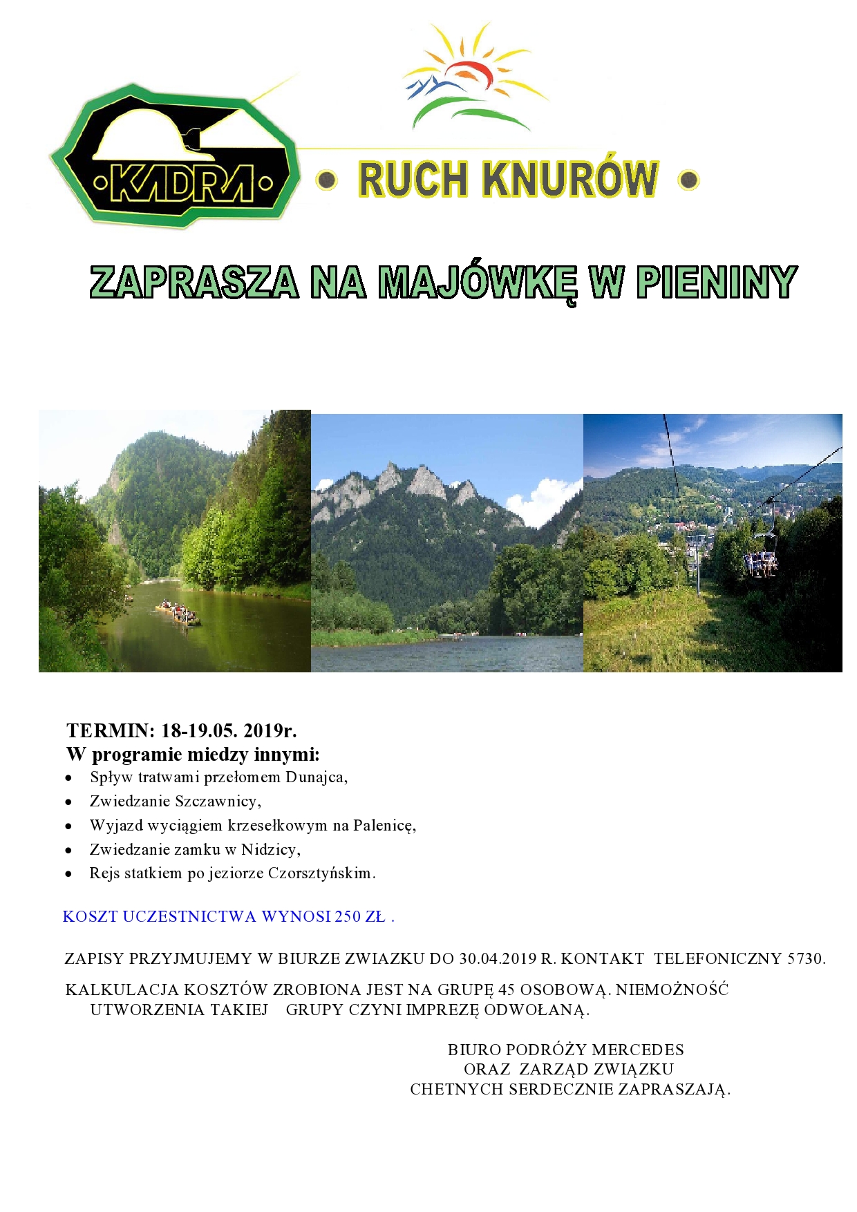 18-19.05.2019 Zapraszamy na majówkę w Pieniny