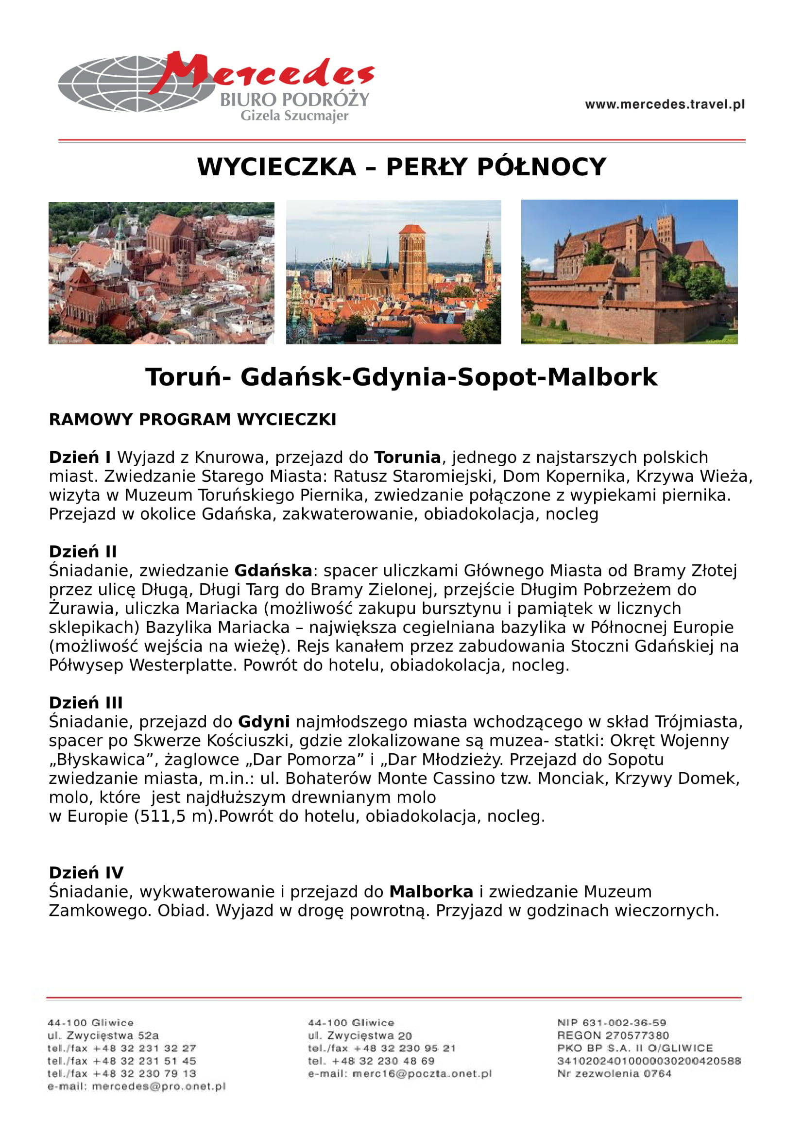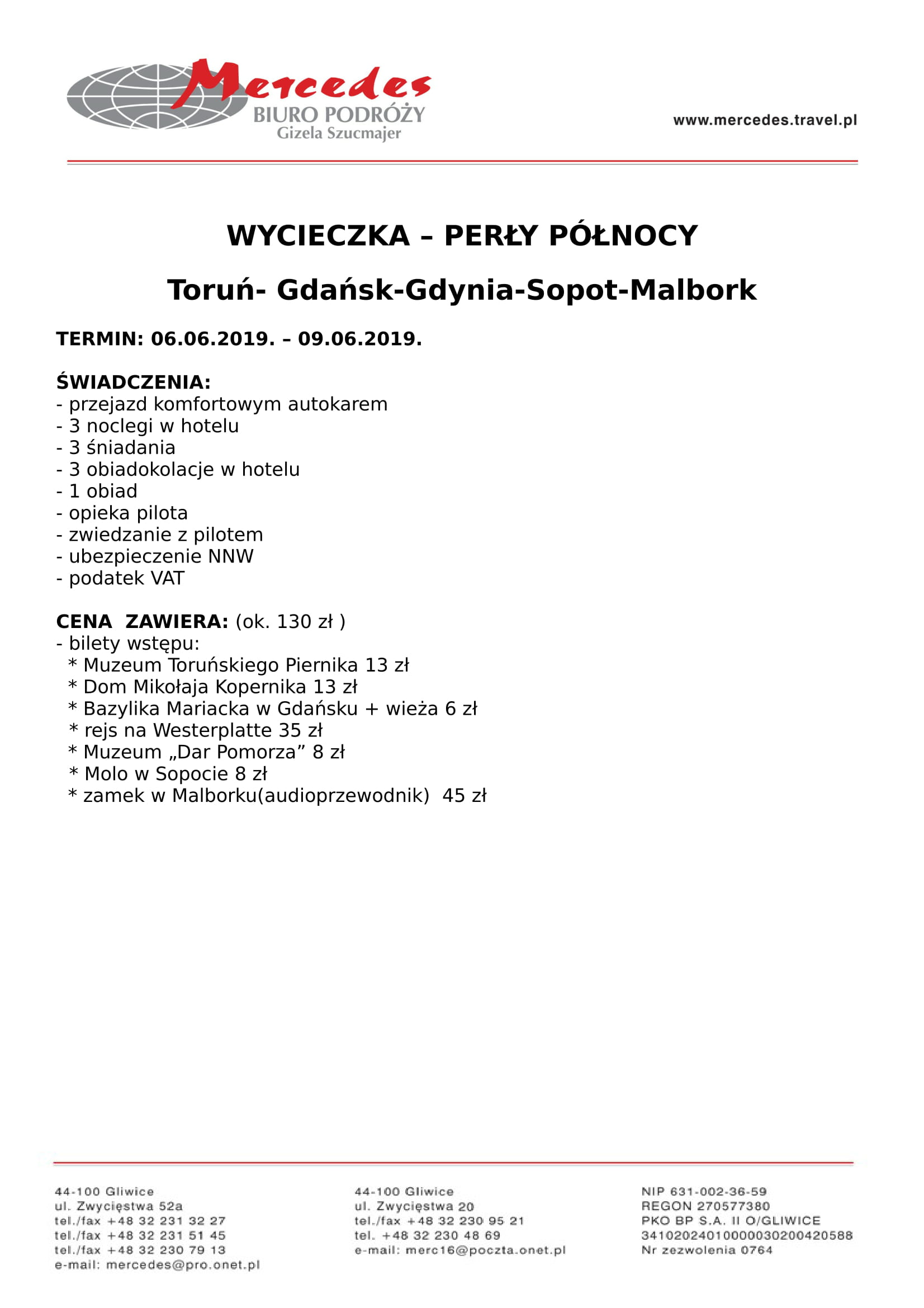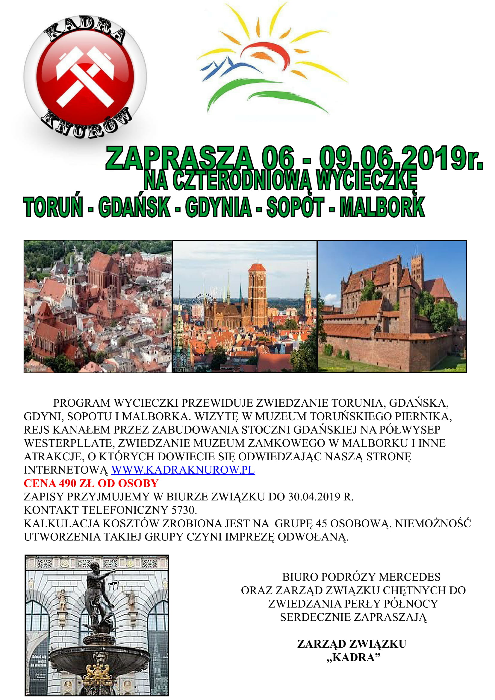 06-09.06.2019 Zapraszamy na czterodniową wycieczkę Toruń-Gdańsk-Gdynia-Sopot-Malbork